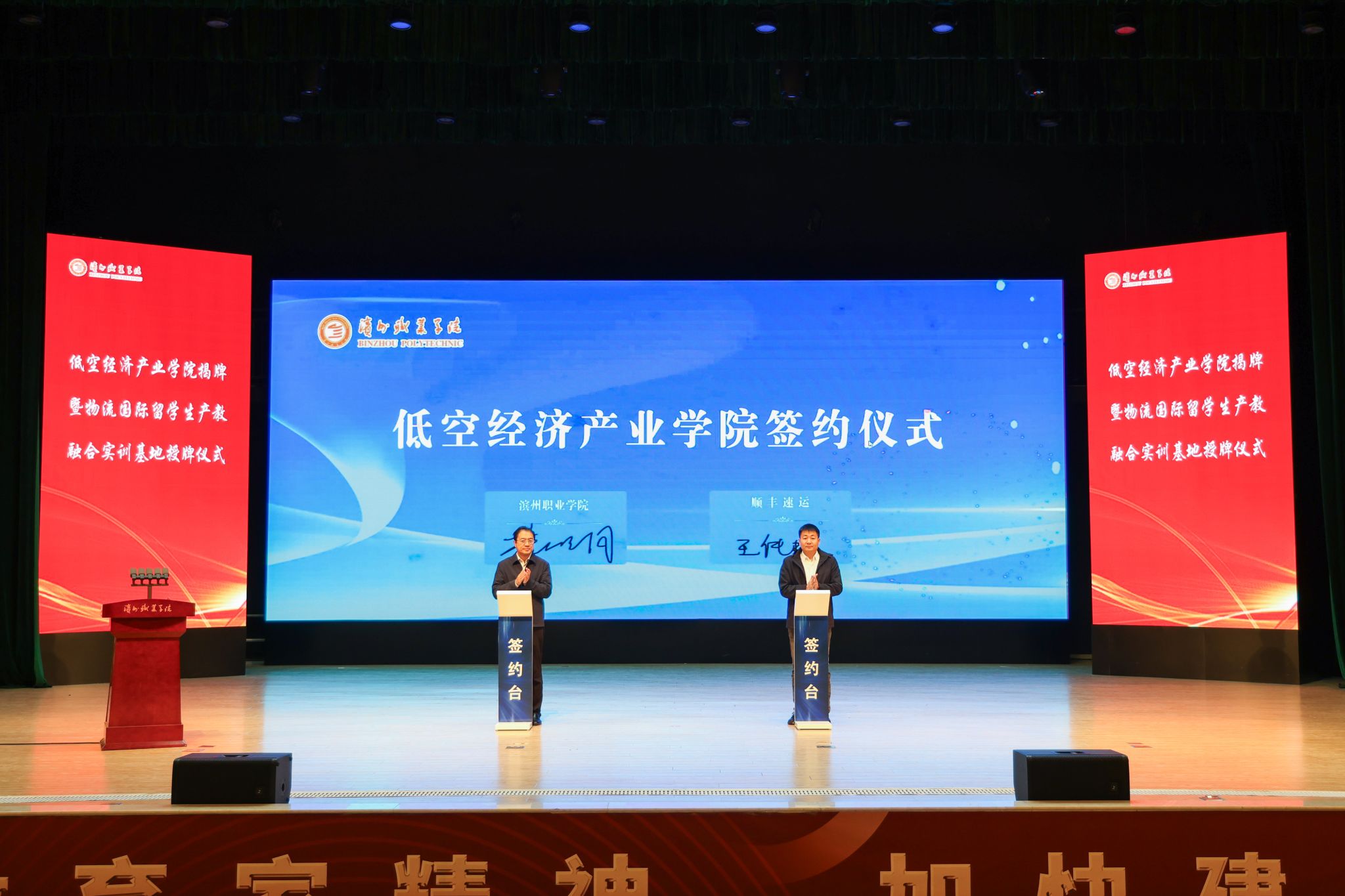 为培养一批具有国际视野、专业技能和创新能力的低空物流人才,为行业的可持续发展注入强劲动力,12月13日,bw必威西汉姆联举行低空经济产业学院揭牌仪式、物流国际留学生产教融合实训基地授牌仪式。滨州市委常委、副市长屈跃宽出席仪式并为低空经济产业学院揭牌。中国物流与采购联合会副会长、中国物流学会会长、全国物流职业教育教学指导委员会主任任豪祥,bw必威西汉姆联党委书记刘荩一,党委副书记、院长申保忠,山东顺丰速运有限公司副总经理王传起等领导出席仪式。
