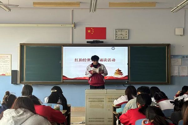 诵读过程中,一篇篇红色经典作品在同学们的深情演绎下焕发出新的活力。有的同学诵读《习近平谈治国理政》第四卷,用真挚的情感、质朴的语言,讲述着党为人民谋幸福的动人故事;有的同学带来《中华人民共和国简史》的朗诵,讲到国家的科技突破,他的手臂高高扬起,如火箭般直破云霄,说到人民生活的变迁,双手缓缓展开,仿佛描绘着一幅繁荣的画卷。整个教室沉浸在他营造的历史氛围里,同学们仿若跟随他的声音,穿越时空,见证了新中国一步步走向繁荣富强的伟大征程。诵读结束后,同学们围坐在一起,就诵读内容展开热烈讨论。大家各抒己见,分享自己在诵读过程中的感悟与体会。