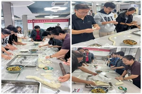 活动现场处处洋溢家的暖意。非遗竹编时,纤细竹丝在师生指尖翻飞,编织出玉兔、圆月等中秋意象,非遗文化与“工匠精神”悄然相融。厨艺区里,老师们亲手示范调馅、擀皮,同学们分工协作,面团在掌心揉出温度,水饺在沸水中翻滚出烟火气。“这是我离家后的第一个双节,和老师、同学一起包的水饺,吃着比家里的更有‘家味’!”来自吉林的新生捧着热乎水饺,满脸真挚地感慨。猜灯谜环节,涵盖传统文化与专业知识的谜题引发阵阵讨论。才艺展演中,歌声与笑声交织成趣;自我介绍时,家乡故事在现场流转。陌生学子在顷刻间打破隔阂,“经英苑”里“一家人”的归属感愈发浓厚。