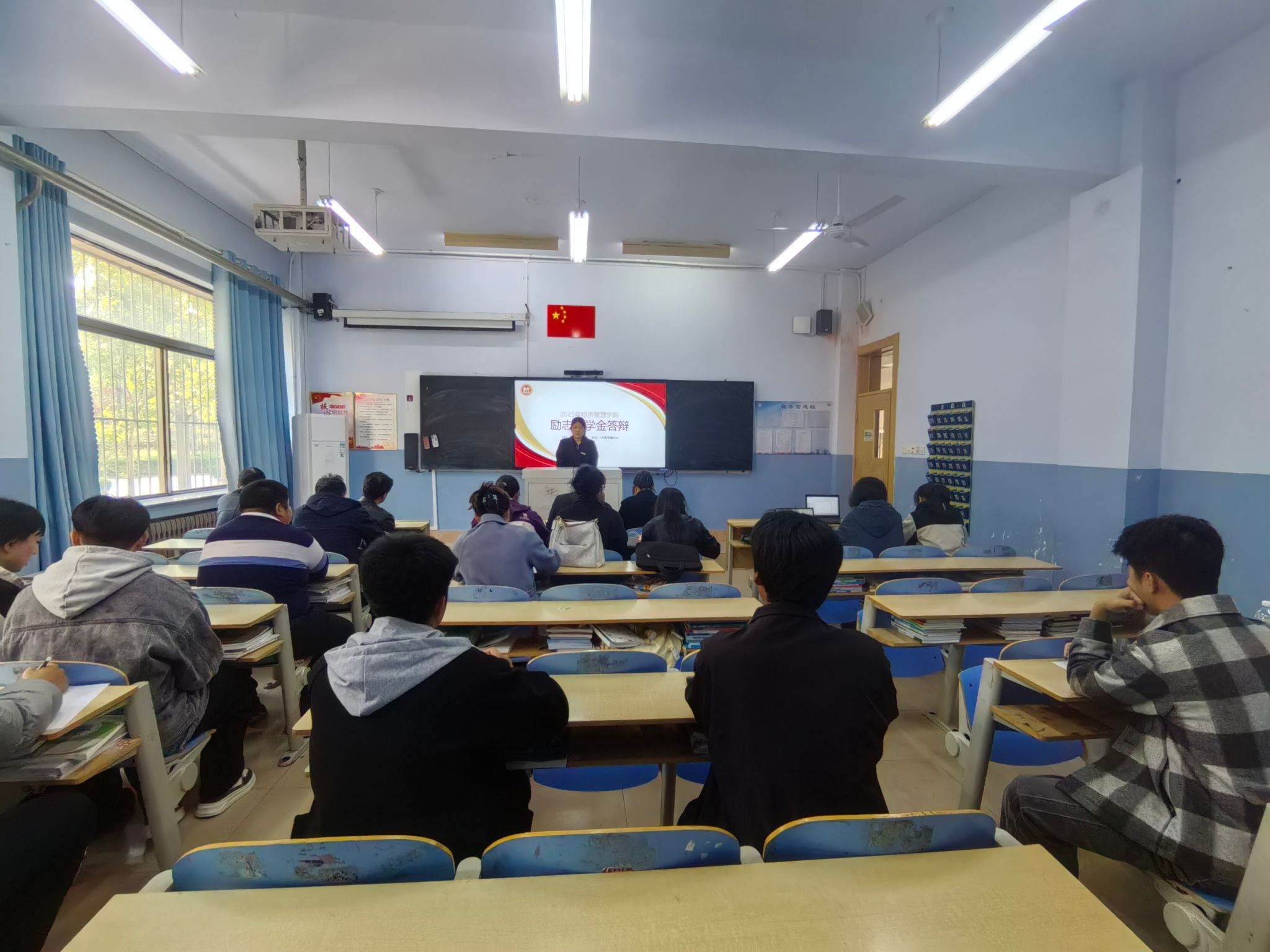 本次评选工作始终坚持 “公平、公正、公开、择优” 原则,结合学院学生构成特点,创新采用 “在校生现场面试 + 实习生视频面试” 相结合的考核方式,确保评选覆盖全体符合条件的学生。对于在校正常上课的学生,学院在教学楼设立专属面试考场,由学院领导、辅导员、学生代表组成评审小组,围绕学业成绩、科研实践、志愿服务、家庭经济情况等维度进行现场提问与综合赋分,全面考察学生的综合素质与励志成长经历;针对在外实习、无法返校的学生,评审小组通过线上视频面试形式开展,让每一位候选学生都能充分展示自身优势,确保评选过程无死角、无遗漏。